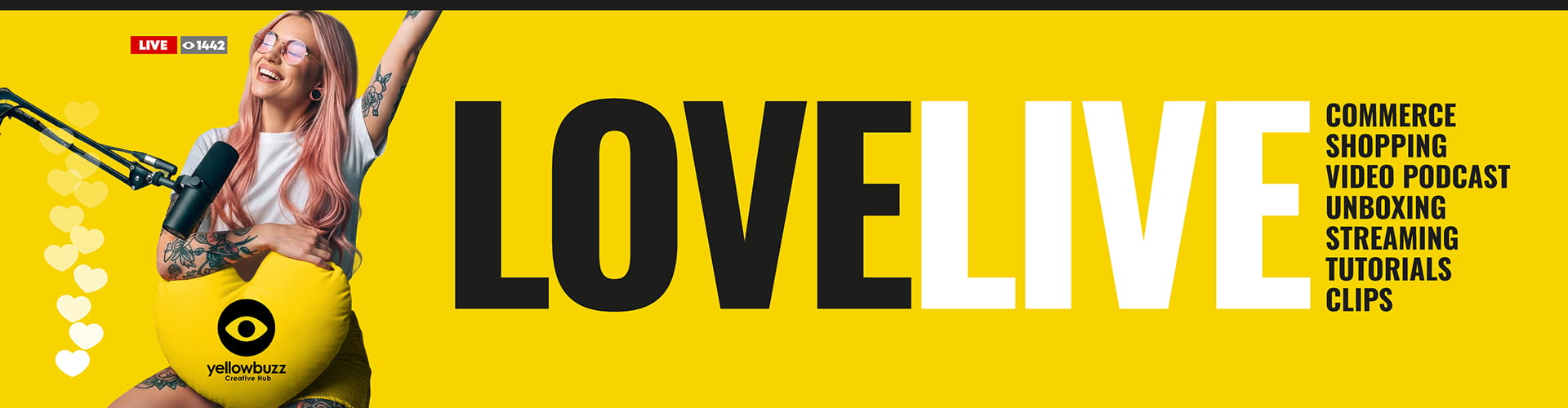 Yellowbuzz es un espacio que reúne dos mundos: por un lado, cuenta con 2 Pop Up Studios audiovisuales modulares, diseñados para producir contenido de Social Media de forma rápida, profesional y cercana. Por otro lado, funciona como un Creative Hub: un entorno de cowork en el universo del Live Streaming y el Social Commerce, pensado para facilitar el networking y potenciar el desarrollo de negocios, conectando a creadores de contenido y sellers